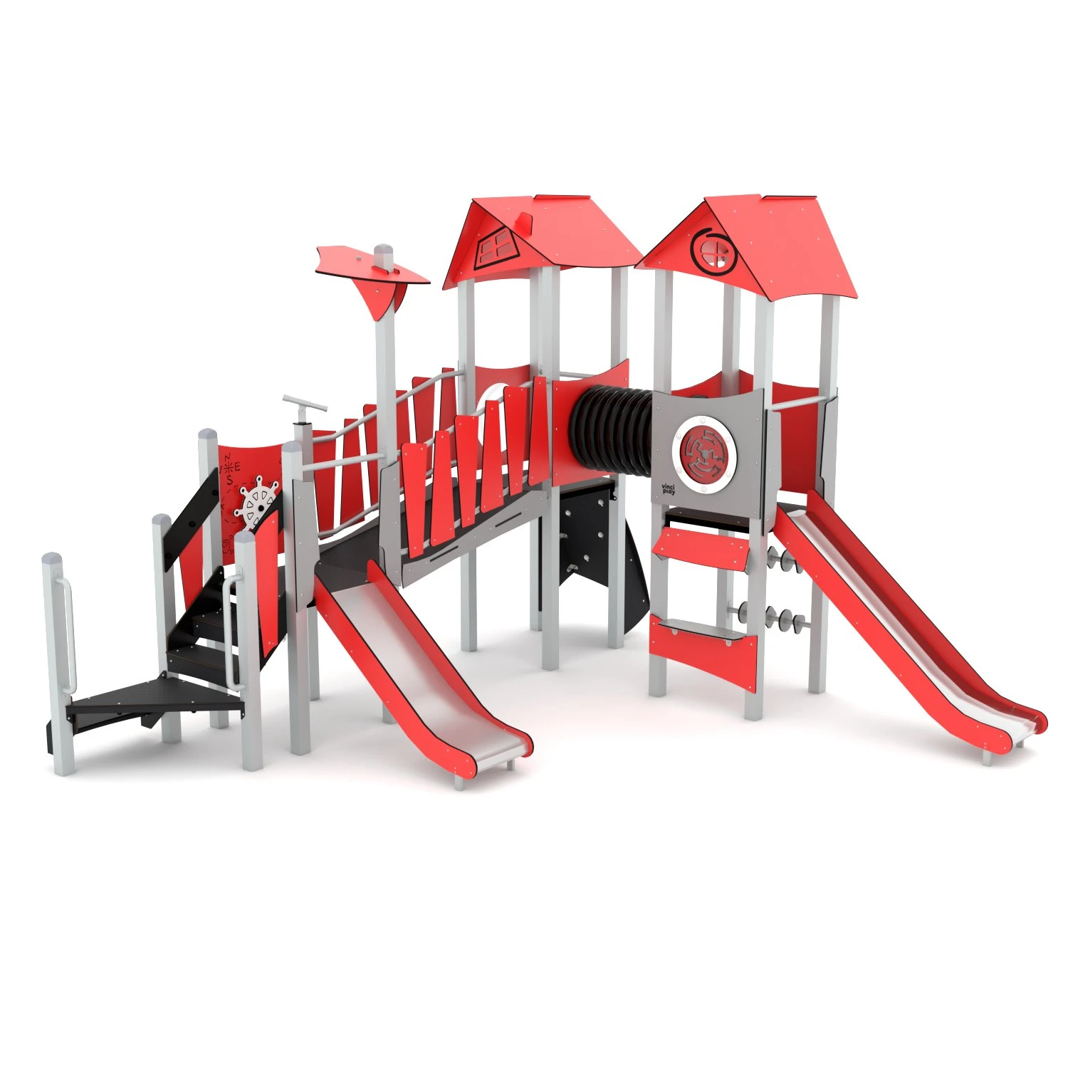 The STEEL+ Series comprises modern tower structures with many features that will delight both younger and older children. Colourful towers enriched with musical elements are just the perfect place to have some fun with fellow companions and are also a great spot for relaxation. A vast variety of devices with educational elements facilitate the integration of children of different fitness levels.