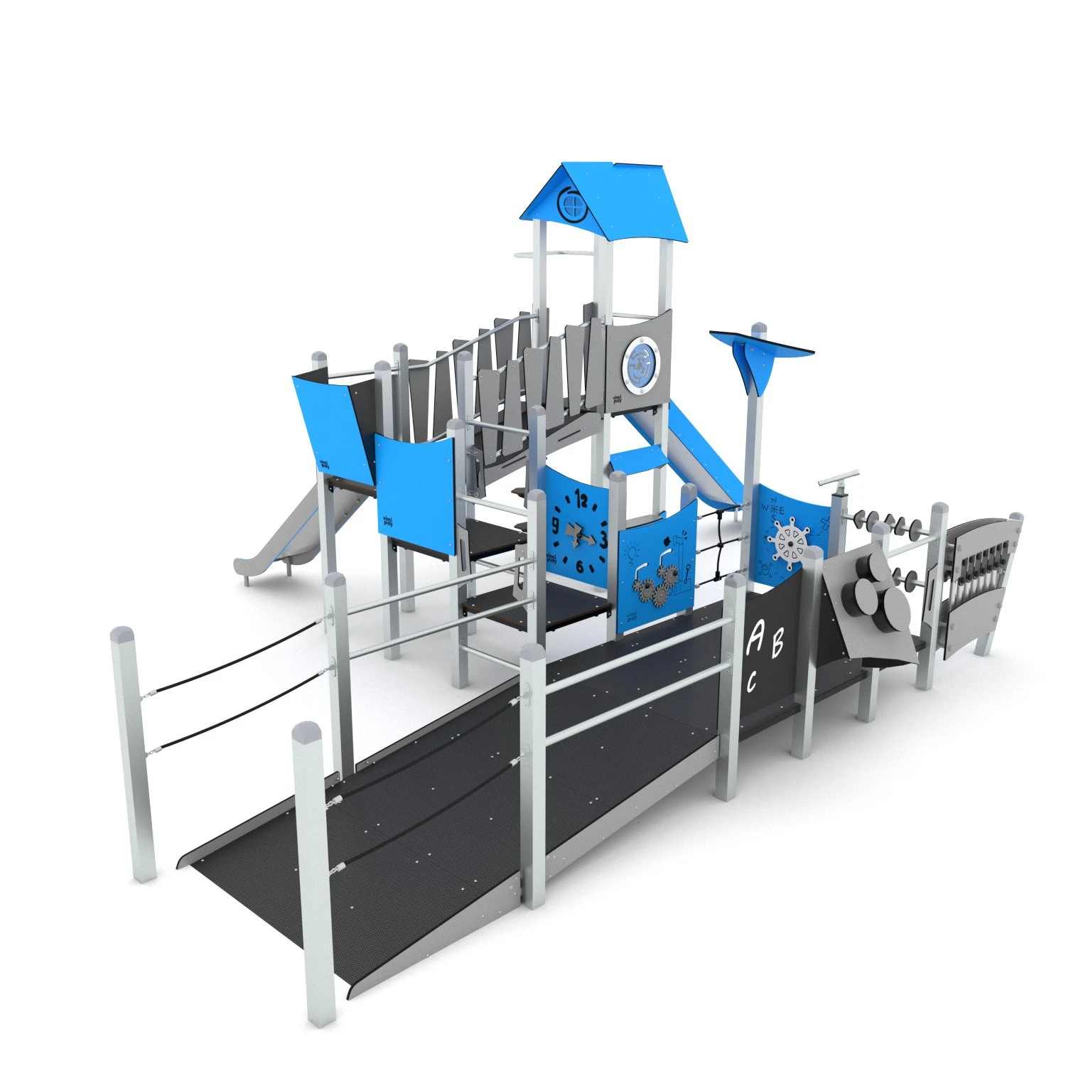 The STEEL+ Series comprises modern tower structures with many features that will delight both younger and older children. Colourful towers enriched with musical elements are just the perfect place to have some fun with fellow companions and are also a great spot for relaxation. A vast variety of devices with educational elements facilitate the integration of children of different fitness levels.